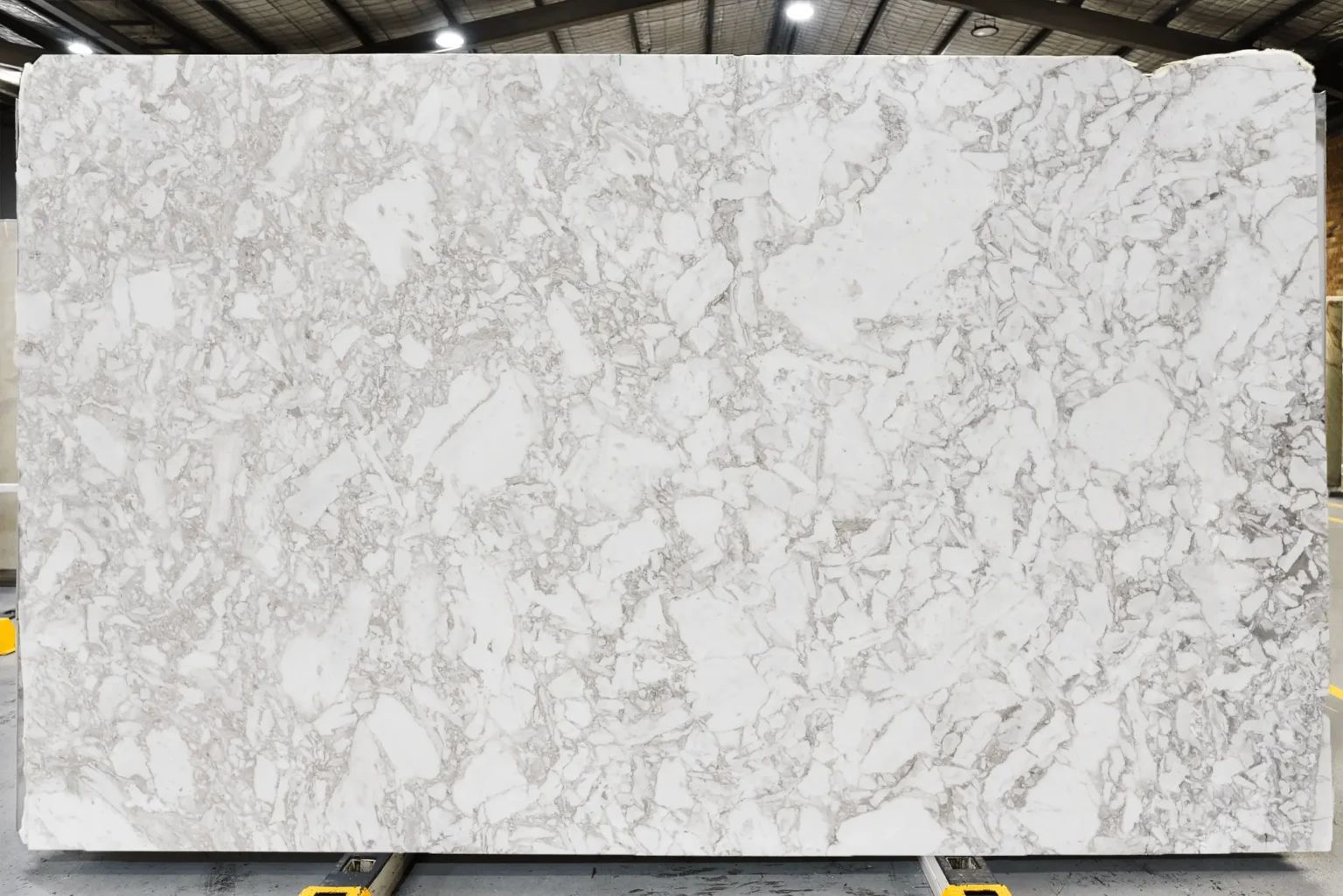 Calacatta Vagli Marble is a luxurious natural stone sourced from the prestigious Carrara Mountain ranges of Italy, presenting a warm white background richly accented with soft earthy gold veining in a distinctive brecciated pattern that feels like nature’s own brushwork across each slab. The fragmented, artistic quality of the veining gives this marble a character and depth that sets it apart from more linear Italian marbles, creating a surface that feels simultaneously organic and refined. The warm gold undertones catch the light beautifully throughout the day, making it equally stunning in large format applications such as kitchen islands and feature walls as it is in more intimate settings like shower niches and fireplace hearths. A favourite among interior designers for its warmth and versatility, Calacatta Vagli pairs beautifully with timber cabinetry, brass fixtures and natural materials, bringing timeless Italian elegance to any space it graces. Like all marble, regular sealing and prompt cleanup of spills will preserve its natural beauty for years to come.