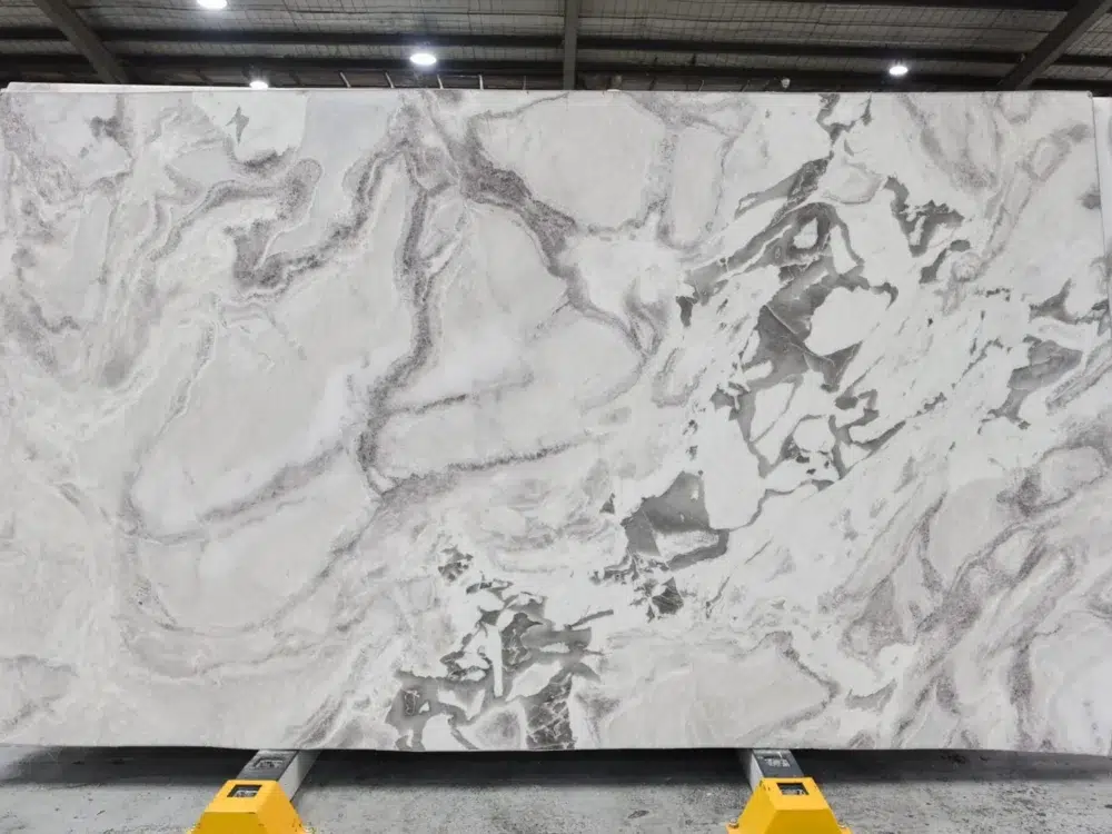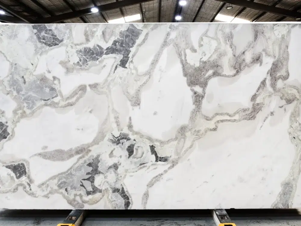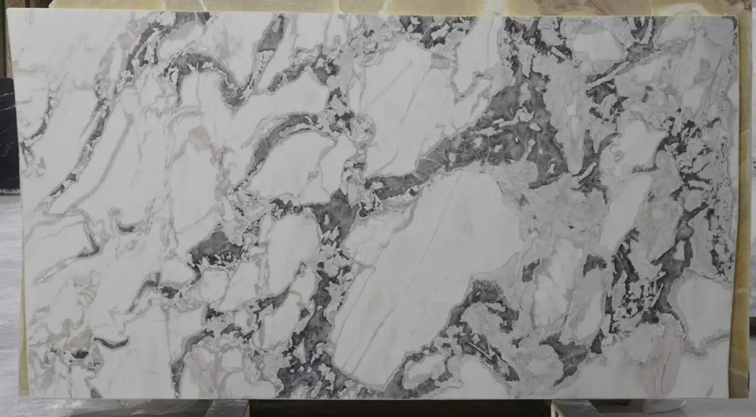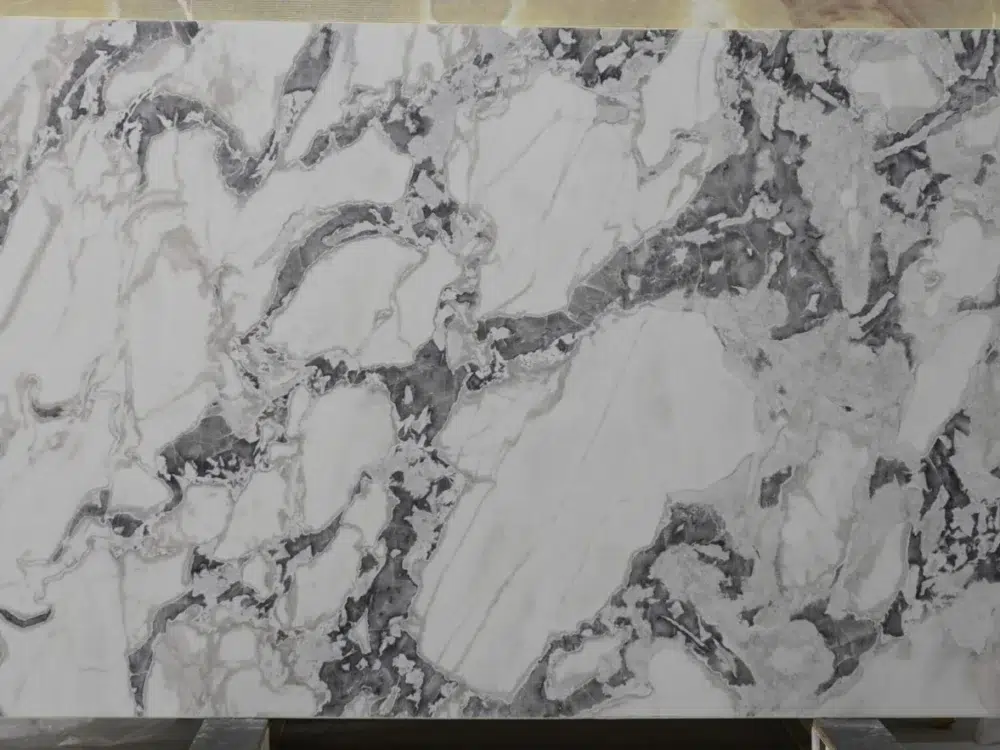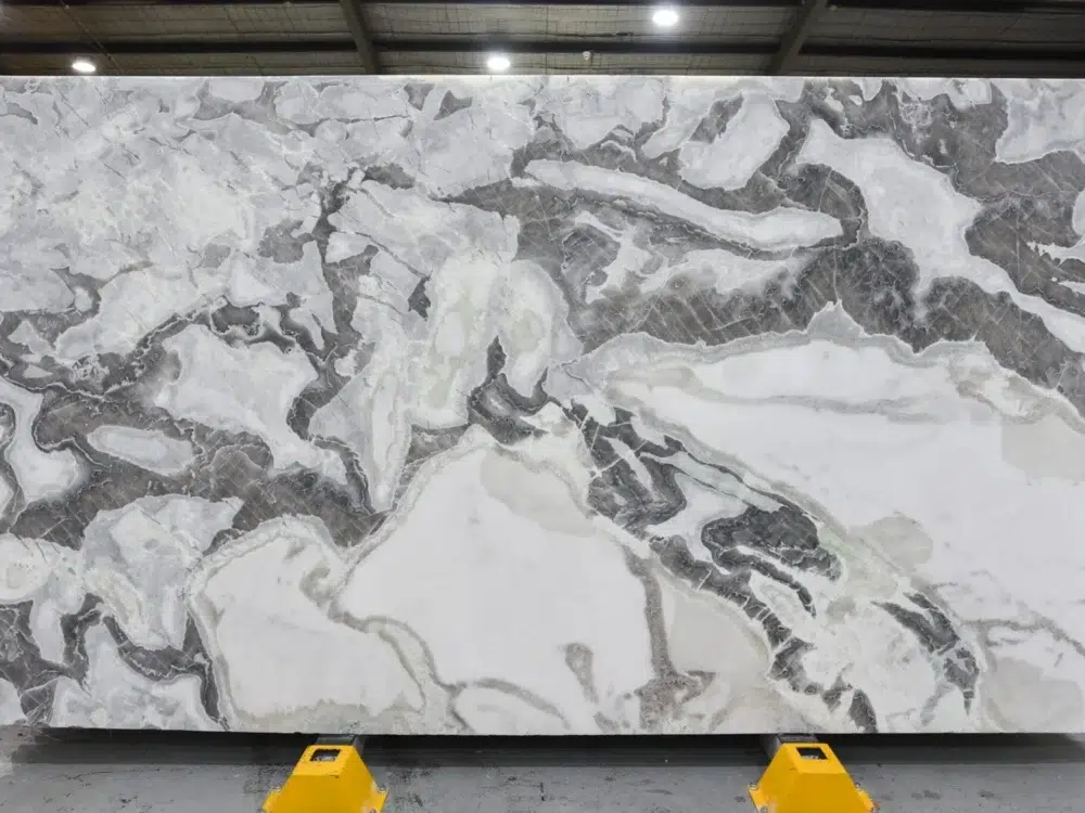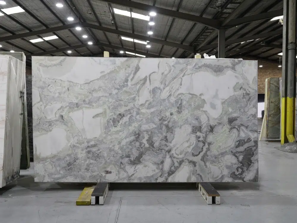 Athena Marble makes an immediate impression with its soft ash grey background dramatically illuminated by bold, radiant gold veining that sweeps across each slab with an almost painterly intensity. The interplay between the cool grey tones and the warm luminous gold creates a captivating balance that feels simultaneously striking and sophisticated, vibrant yet refined. Each slab carries its own unique composition, with the golden veining catching light in ways that shift and deepen throughout the day, adding a sense of warmth and movement to any space it occupies. A natural choice for luxury kitchen benchtops, statement feature walls and elegant bathroom vanities, Athena Marble brings a breathtaking sense of opulence and exclusivity to interiors that deserve nothing less than extraordinary.