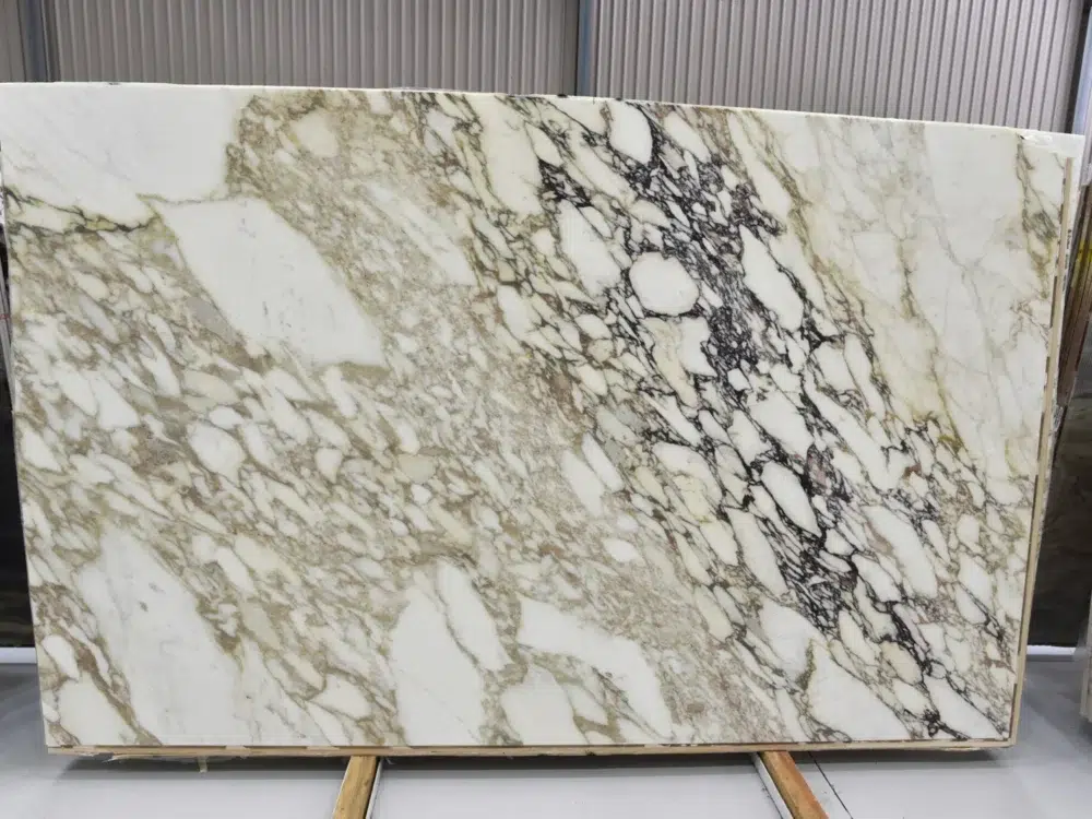 Calacatta Vagli Marble is a luxurious natural stone sourced from the prestigious Carrara Mountain ranges of Italy, presenting a warm white background richly accented with soft earthy gold veining in a distinctive brecciated pattern that feels like nature’s own brushwork across each slab. The fragmented, artistic quality of the veining gives this marble a character and depth that sets it apart from more linear Italian marbles, creating a surface that feels simultaneously organic and refined. The warm gold undertones catch the light beautifully throughout the day, making it equally stunning in large format applications such as kitchen islands and feature walls as it is in more intimate settings like shower niches and fireplace hearths. A favourite among interior designers for its warmth and versatility, Calacatta Vagli pairs beautifully with timber cabinetry, brass fixtures and natural materials, bringing timeless Italian elegance to any space it graces. Like all marble, regular sealing and prompt cleanup of spills will preserve its natural beauty for years to come.
