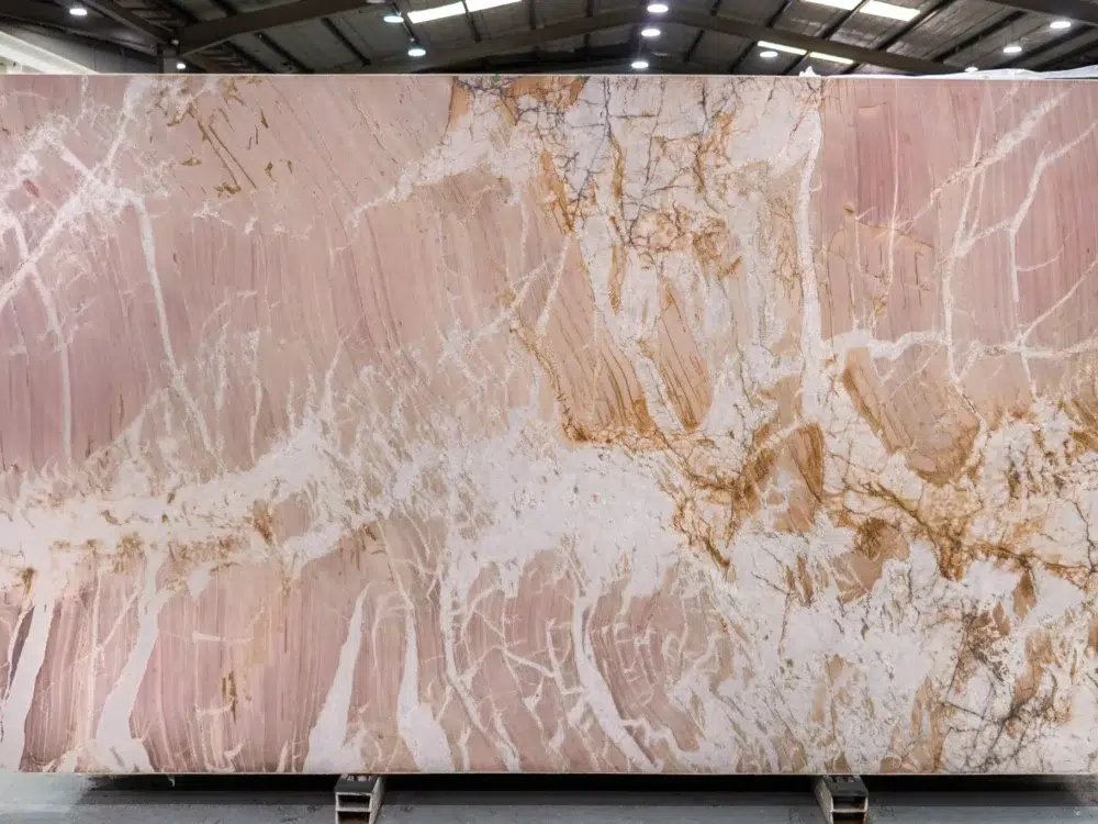 Caraxes Quartzite commands immediate attention with bold dark veining that weaves intricate pathways across a lighter base, creating a captivating interplay of contrast and movement that feels simultaneously dramatic and refined. Unlike uniformly patterned stones, each slab carries its own unique composition, complex enough to reward closer inspection yet confident enough to make a statement from across the room. What makes Caraxes particularly well-suited to contemporary Australian interiors is its sense of balance; the dark on light patterning delivers the visual interest modern spaces crave without ever tipping into overwhelming territory. Perfectly suited to kitchen benchtops, feature walls, statement islands and bathroom vanities, it pairs beautifully with sleek charcoal or crisp white cabinetry, brushed nickel or matte black fixtures and minimalist styling that allows the stone’s natural artistry to take full centre stage. For urban apartments, contemporary homes and commercial fitouts seeking a genuinely refined edge, Caraxes Quartzite is an outstanding natural choice.