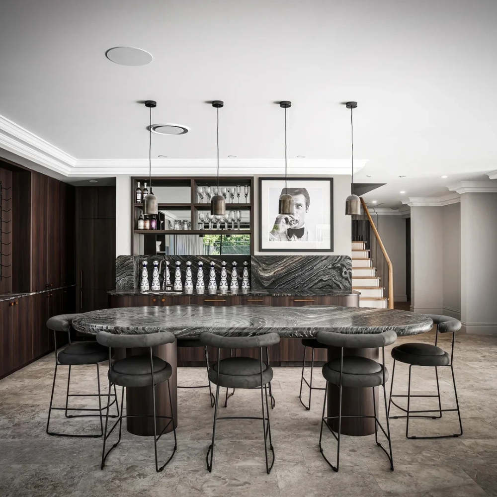 Athena Marble makes an immediate impression with its soft ash grey background dramatically illuminated by bold, radiant gold veining that sweeps across each slab with an almost painterly intensity. The interplay between the cool grey tones and the warm luminous gold creates a captivating balance that feels simultaneously striking and sophisticated, vibrant yet refined. Each slab carries its own unique composition, with the golden veining catching light in ways that shift and deepen throughout the day, adding a sense of warmth and movement to any space it occupies. A natural choice for luxury kitchen benchtops, statement feature walls and elegant bathroom vanities, Athena Marble brings a breathtaking sense of opulence and exclusivity to interiors that deserve nothing less than extraordinary.