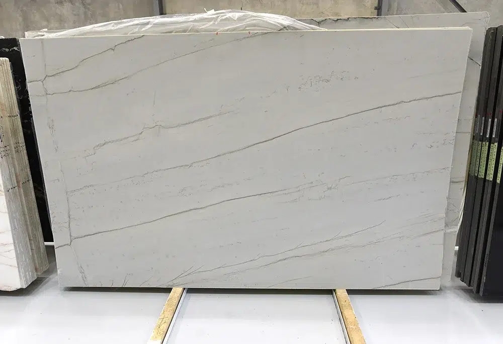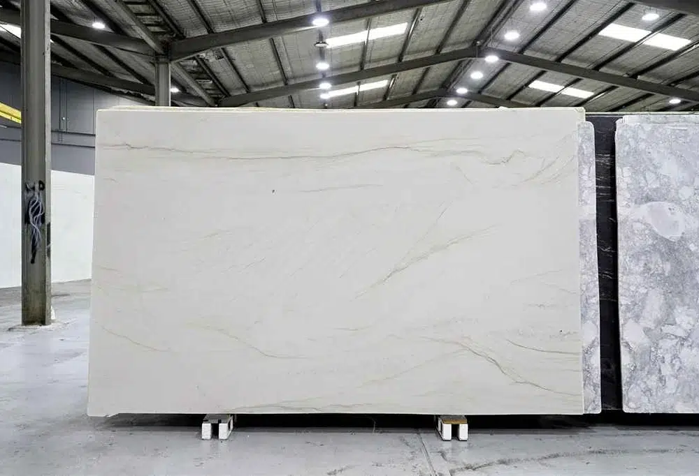 Mont Blanc Quartzite is a perennial favourite in the Avant Stone collection, and it is easy to understand why. A creamy white background delicately accented with soft grey and warm tan veining creates an elegant, marble-like aesthetic that feels timelessly beautiful in any interior setting. What truly sets Mont Blanc apart is the combination of that refined, sophisticated appearance with the exceptional durability and natural strength that quartzite is celebrated for, delivering the best of both worlds in a single, remarkable natural stone. The warm tonal quality running throughout the stone makes it a particularly beautiful pairing with timber cabinetry and natural finishes, bringing a cohesive warmth to kitchens, bathrooms and living spaces that feels genuinely inviting. Its angular veining also lends itself beautifully to book-matched applications, where mirrored adjacent slabs create sweeping symmetrical compositions of understated elegance on feature walls and statement installations. Perfectly suited to benchtops, walls and floors across both residential and commercial settings, Mont Blanc Quartzite brings a classic, enduring beauty and a quiet natural sophistication to any interior fortunate enough to showcase it.