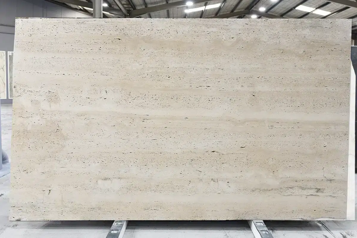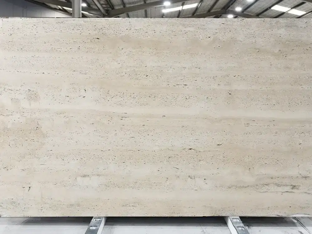 Navona Travertine is a delicately refined natural stone that sets itself apart from conventional travertines with a luminous white base gracefully marked by soft, creamy beige streaks that drift across the surface with an almost ivory warmth and quiet, understated elegance. Where many travertines lean towards deeper beige and warm caramel tones, Navona sits in a lighter, more luminous territory, offering a refined sophistication that feels closer to the purity of white marble while retaining the authentic natural character and gentle texture that makes travertine so enduringly beloved. The subtle creamy streaking adds just enough tonal variation to give the stone depth and visual interest without disrupting its overall sense of serene, timeless calm. Perfectly suited to bathroom vanities, feature walls, kitchen benchtops and sophisticated flooring, Navona Travertine pairs beautifully with brushed brass fixtures, soft white joinery and natural timber accents, bringing a luminous, quietly charming elegance to any interior that appreciates the understated beauty of truly refined natural stone. As with all travertine, periodic sealing every one to two years will protect its naturally porous surface and preserve its timeless beauty.
