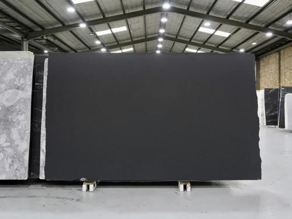 Nero Assoluto Granite is a deep, consistently black natural stone quarried in Zimbabwe, prized for its timeless elegance, exceptional density and a refined sophistication that has made it one of the most sought-after dark granites in the world. The uniform black surface is enriched by subtle crystalline flecks that catch light with a quiet brilliance, giving the stone a depth and character that goes beyond simple darkness and elevates it into something genuinely luxurious. As one of the hardest and most durable natural stones available, Nero Assoluto offers outstanding natural resistance to heat, staining and daily wear, making it as practical and reliable as it is visually striking, a rare combination that makes it a perennial favourite for busy Sydney kitchens and high-use commercial applications. Available in both a leathered finish with a soft, lightly textured sheen that hides fingerprints beautifully, and a pepper finish that adds medium texture and tactile depth, each option brings a different dimension of the stone’s inherent character to the surface. Perfectly suited to kitchen benchtops, bathroom vanities, bar tops, outdoor BBQ areas and commercial fitouts, Nero Assoluto pairs beautifully with light cabinetry, stainless steel appliances and warm timber finishes, bringing an enduring dark sophistication to any space it graces.