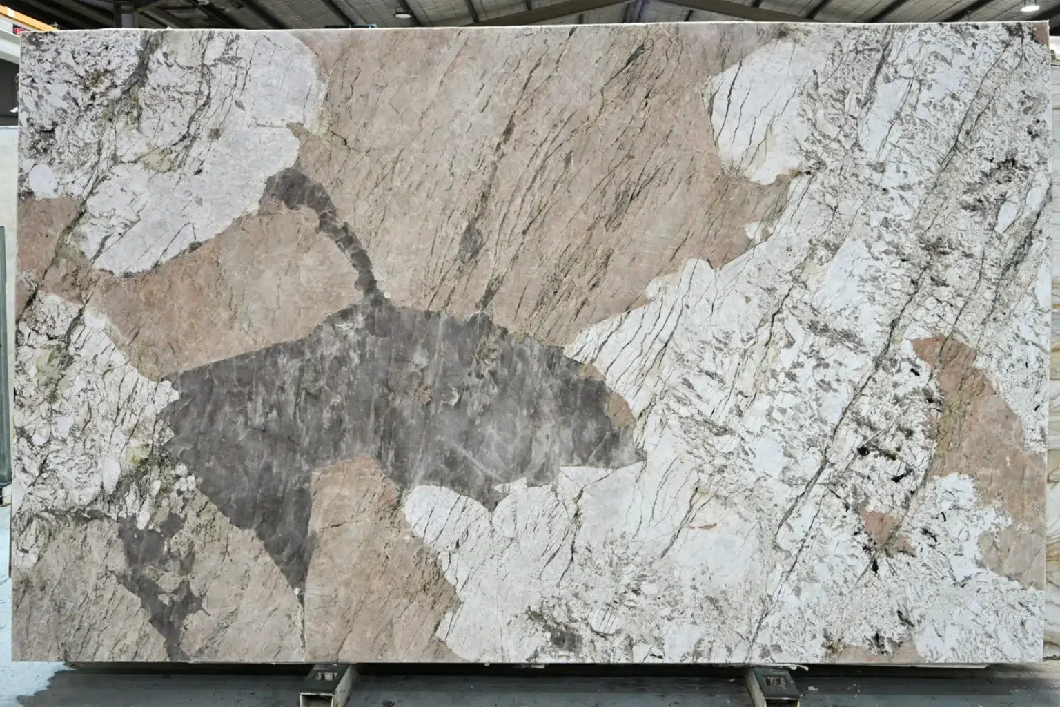 Aurora Quartzite captures the ethereal beauty of the polar lights in natural stone form, with spectacular swirling colourations of soft pastel green, misty grey and luminous white moving across each slab like the aurora borealis frozen in time. The colour palette is genuinely extraordinary, sage greens blending seamlessly into creamy whites and cool greys to create a surface that feels simultaneously serene and alive with natural movement. No two slabs are alike, each carrying its own unique interpretation of these dancing tones. Beyond its remarkable visual appeal, Aurora is a true quartzite, offering exceptional durability and density that makes it equally well suited to kitchen benchtops, outdoor feature walls and everything in between. Available in honed and leathered finishes, it pairs beautifully with natural timber, brushed brass and bronze fixtures and organic textures that complement its earth meets sky aesthetic, making it one of the most versatile and visually captivating stones in the collection.