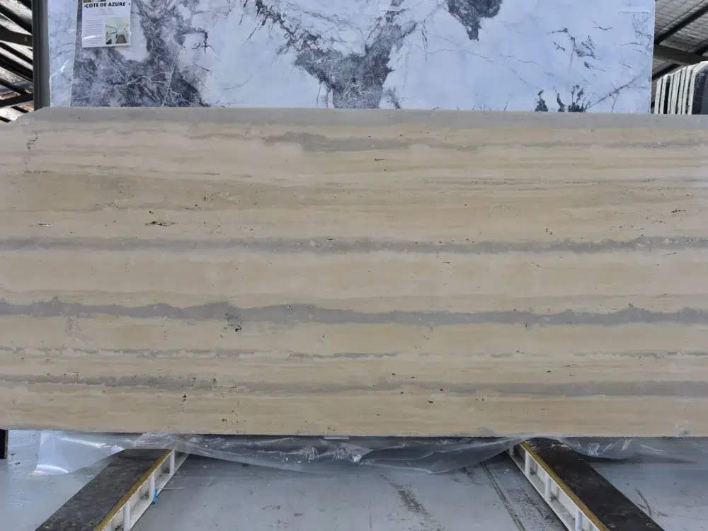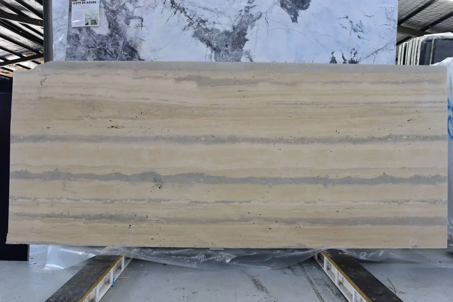 Roman Striato Travertine is a premier Italian travertine quarried from the outer regions of Rome, distinguished by its pronounced horizontal striations that give the stone its name, striato meaning striped in Italian. A warm, earthy background provides the canvas for rhythmic, grey horizontal veining that flows across each slab with a stronger, more defined linear movement than subtler travertine varieties, creating a visual rhythm that is particularly breathtaking across expansive feature walls and flooring where the patterning can flow completely uninterrupted. Carrying the same ancient Italian heritage as the stone used in the Colosseum and countless Roman architectural masterpieces, Roman Striato brings an authentic historical grandeur to contemporary Australian interiors with effortless elegance. Perfectly suited to feature walls, flooring, wall cladding and bathroom applications, it pairs beautifully with warm timber, brass fixtures and Mediterranean-inspired elements. As with all travertine, regular sealing every one to two years will protect its naturally porous surface and keep it looking its best.