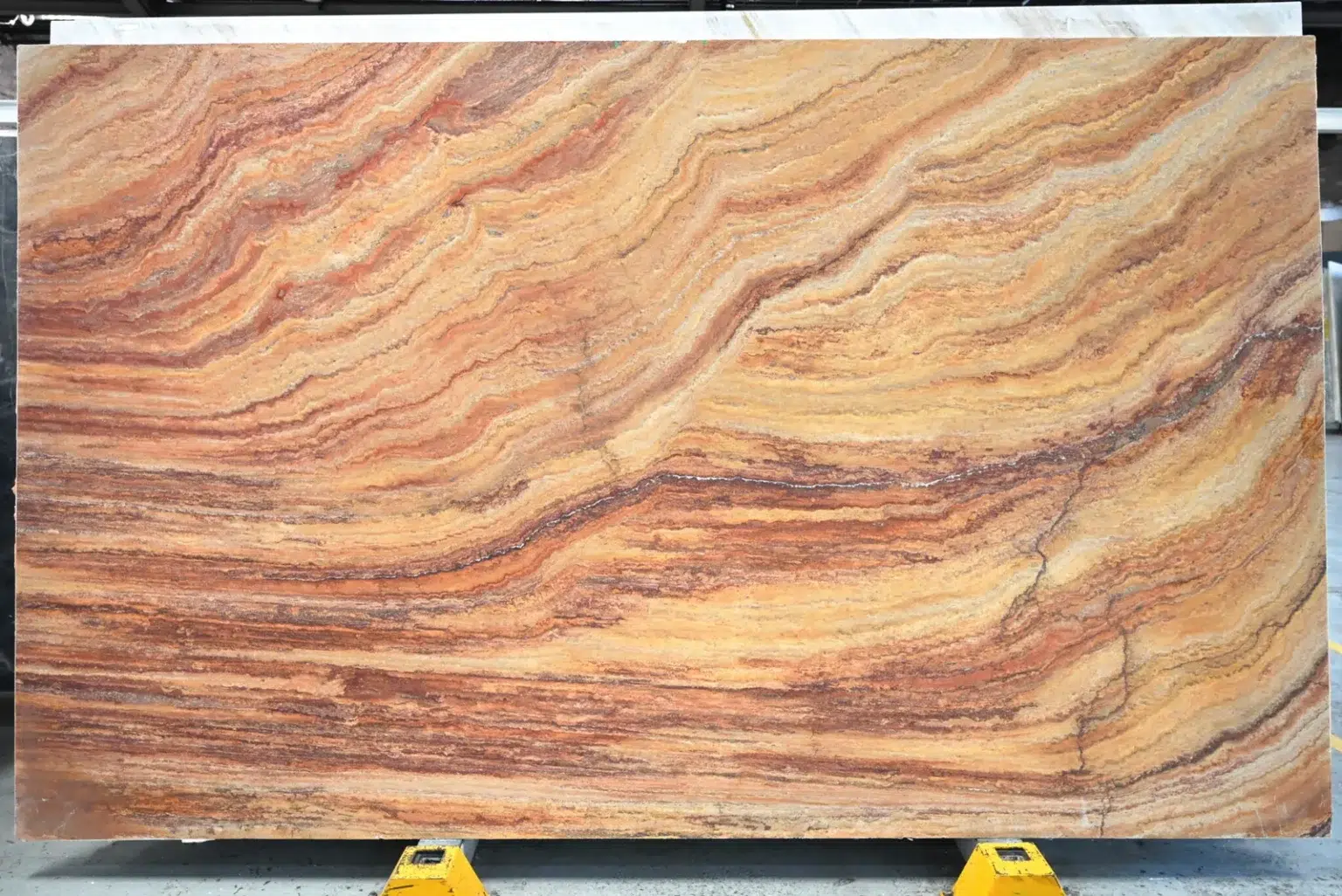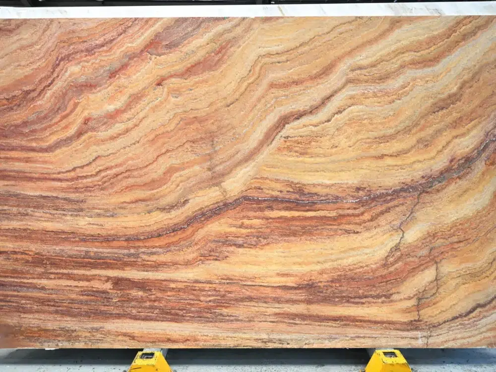 Sienna Travertine takes its name from the sun-baked Tuscan city, and the stone delivers on that promise with a rich blend of warm orange, earthy terracotta and deep rust tones that move across each slab with an organic vitality and bold Mediterranean character that immediately sets it apart from more conventional travertine varieties. Where most travertines lean towards neutral creams or cool greys, Sienna embraces the warmth and energy of Tuscan landscapes with a confidence and vibrancy that makes it a genuinely distinctive and memorable natural stone. The dynamic surface movement and organic variation across each slab create a visual interest that rewards close inspection while making a bold, passionate impression from across the room. Perfectly suited to feature walls, fireplace surrounds, flooring and statement bathroom applications, Sienna Travertine pairs beautifully with warm timber, wrought iron, terracotta, brass and bronze fixtures and earthy neutral tones, bringing an unmistakably alive and deeply sophisticated Mediterranean warmth to any interior it graces. As with all travertine, regular sealing every one to two years will protect its naturally porous surface.