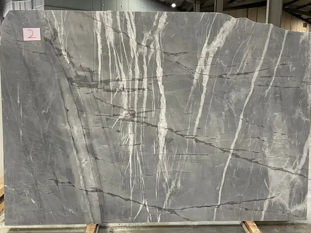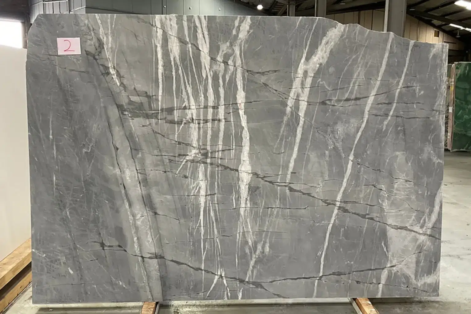 Tempest Savoie Marble is a boldly atmospheric natural stone with a distinct blue-grey background dramatically intersected by strong striated veining that flows both vertically and horizontally across each slab with a brooding, powerful energy that feels genuinely elemental. The striking contrast between the cool, moody blue-grey foundation and the bold veining creates a surface of remarkable visual tension and depth, giving the stone a dramatic character that commands immediate attention and holds it with a dark, sophisticated magnetism. The flowing multi-directional veining adds a sense of turbulent natural movement that feels alive and unpredictable, making every slab a unique and deeply expressive composition of colour and form. For those seeking a stone that brings genuine drama and a moody, atmospheric quality to their chosen application, Tempest Savoie Marble delivers with an uncompromising confidence that few natural stones can match. Perfectly suited to feature walls, kitchen benchtops, bathroom vanities and fireplace surrounds, it pairs beautifully with matte black tapware, brushed nickel fixtures and both warm timber and deep charcoal cabinetry, bringing a brooding and timelessly sophisticated natural drama to any interior that embraces the extraordinary power of dark natural stone.