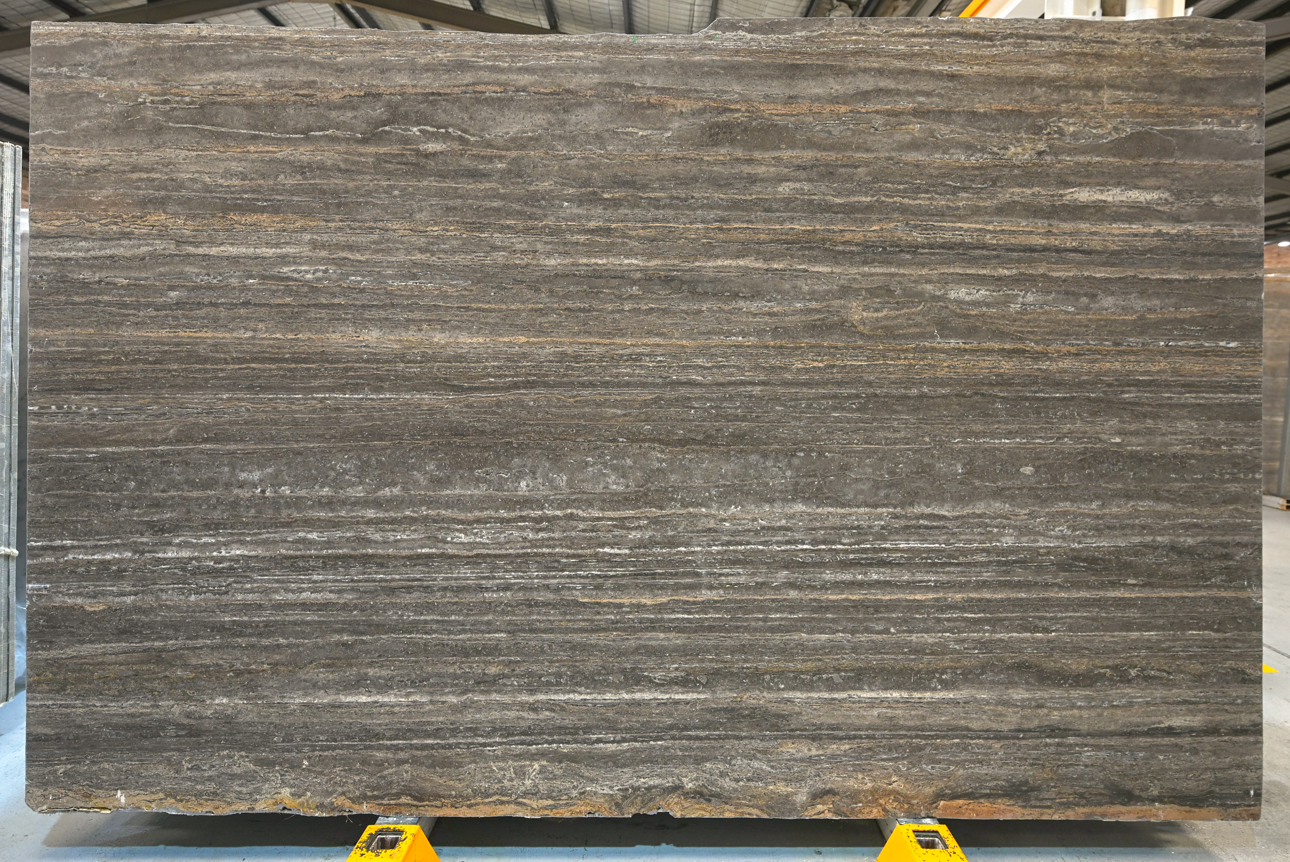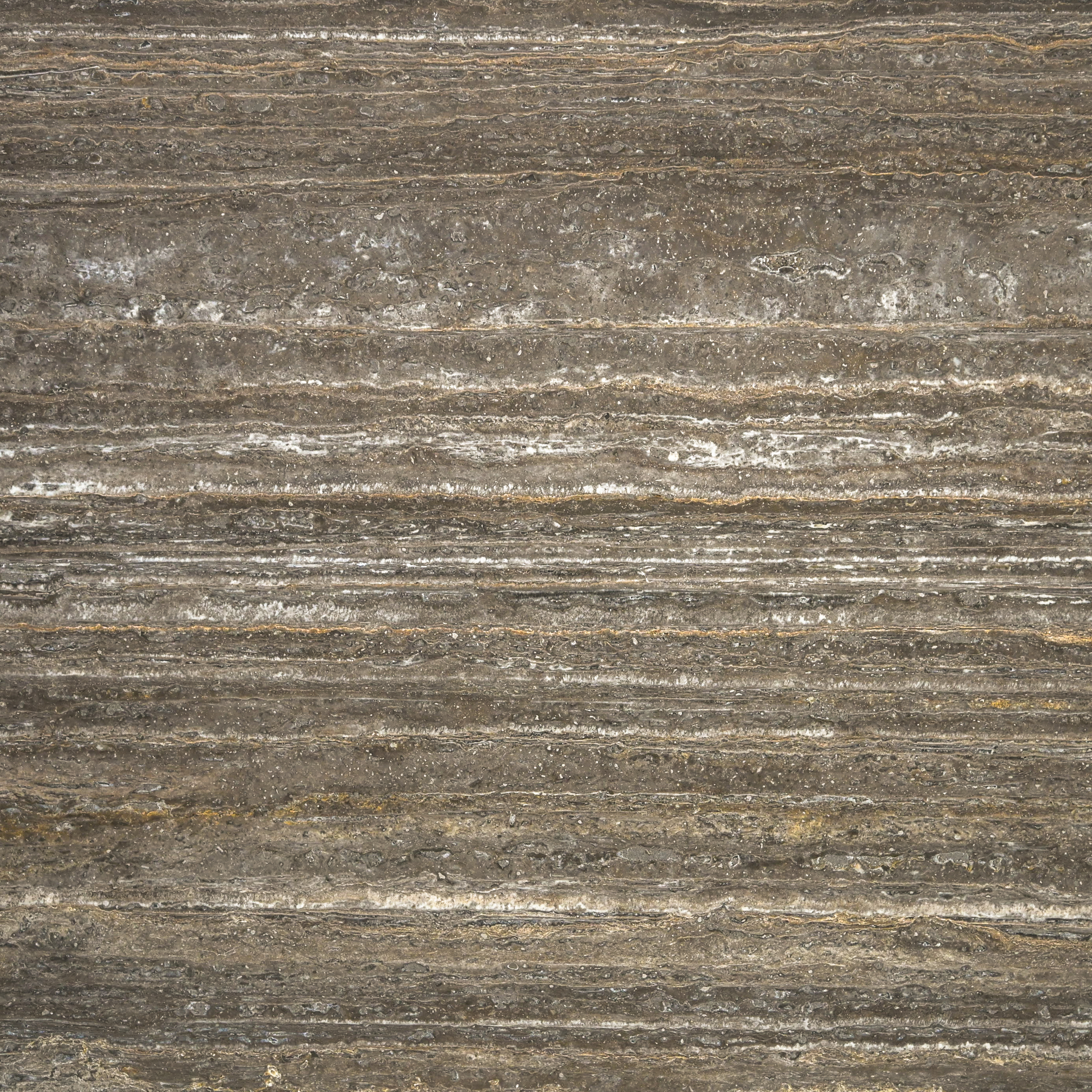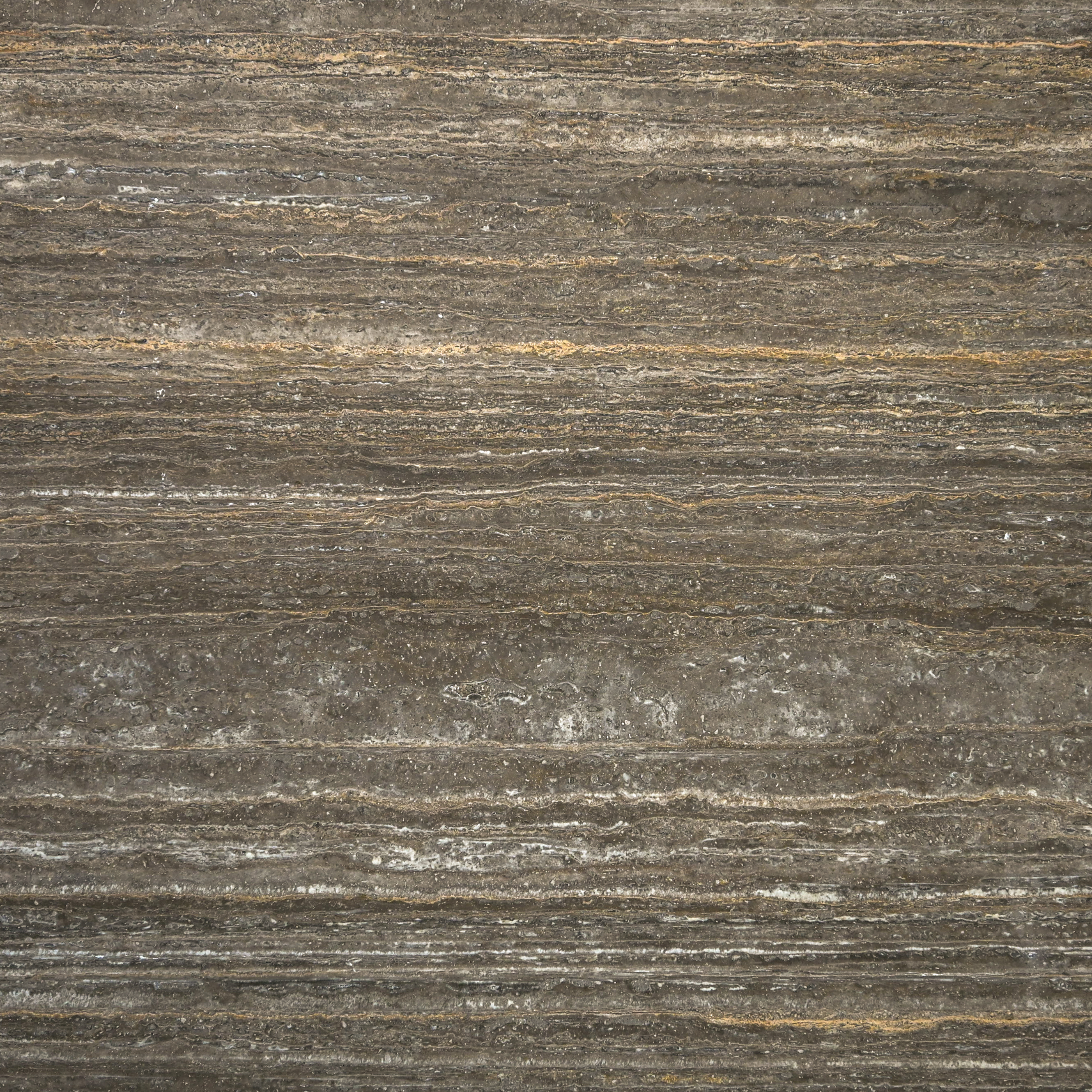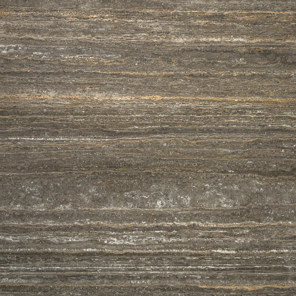 Titanium Travertine showcases a refined blend of dark brown hues, soft beige tones, and subtle silver highlights that flows seamlessly across the surface. Its linear veining and layered contrasts create a rich sense of depth and texture, balancing contemporary sophistication with natural warmth.