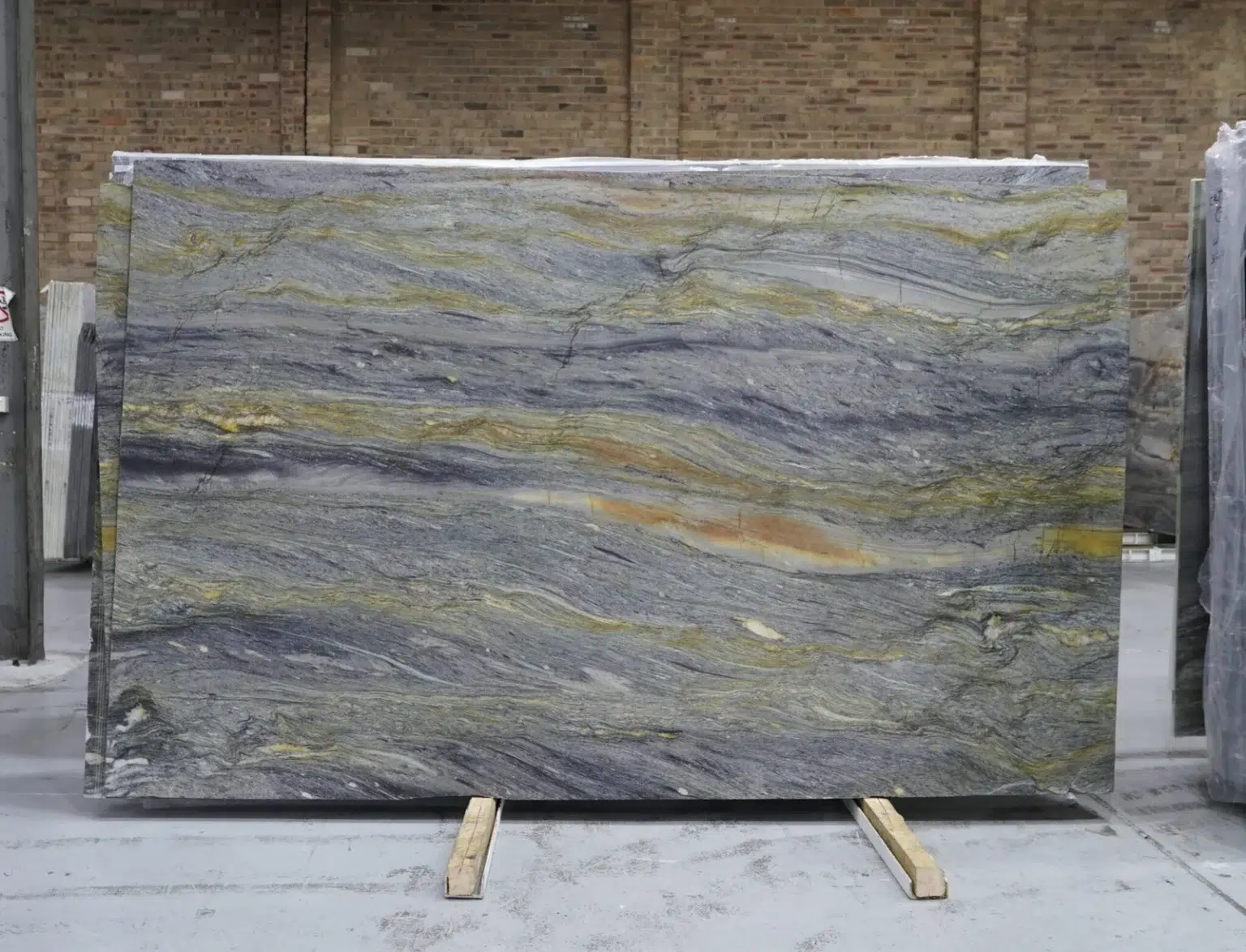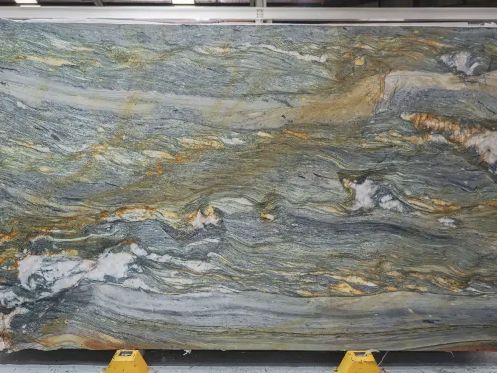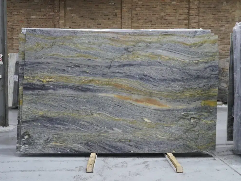 Vulcan Quartzite is a boldly dramatic natural stone with a captivating compilation of intense reds, rich browns and deep blue tones that come together across each slab with a raw, volcanic energy that feels as powerful and elemental as its namesake. Delicate waves of warm gold and copper veining weave through the surface with a luminous, metallic quality that glints beautifully in the light, adding an unexpected warmth and glamour to the already extraordinary colour palette that gives the stone a genuinely jewel-like brilliance from every angle. The extraordinary interplay between the intense cool blue depths, the warm earthy reds and browns and the glinting gold copper tones creates a surface of remarkable visual complexity and depth, making every slab a genuinely unique and captivating composition of natural artistry. Perfectly suited to bold feature walls, statement kitchen islands and luxury bathroom vanities, Vulcan Quartzite brings an unmistakable sense of glamour, sophistication and dramatic natural beauty to any interior that embraces the extraordinary character of truly exceptional natural stone.