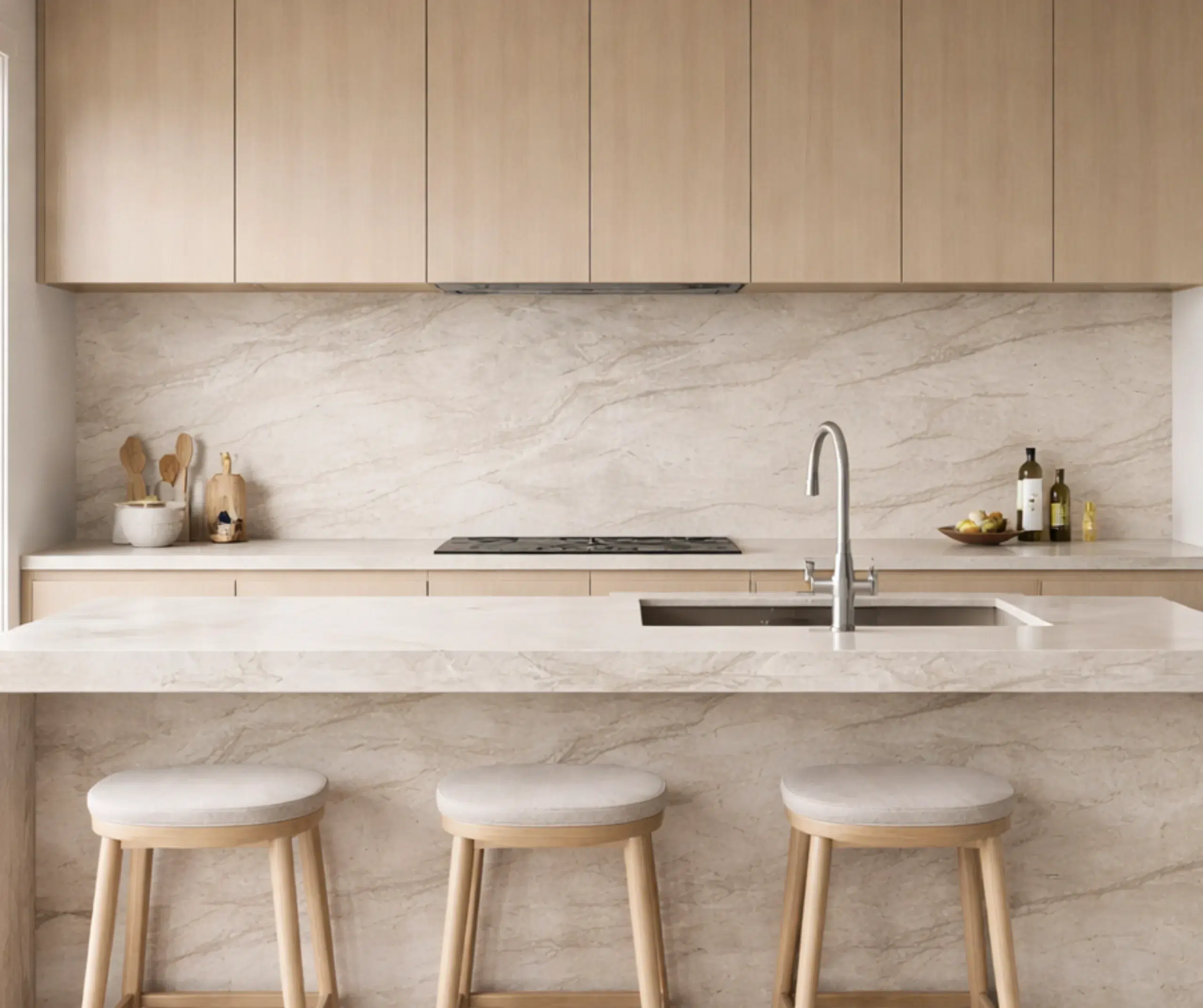 Simple yet elegant. Zena porcelain features soft, warm tones on a beige canvas, adorned with delicate veins of gold and cream. Inspired by our Taj Mahal quartzite, Zena’s design seamlessly complements both contemporary and classic interiors, making it a versatile choice for any residential or commercial project. Experience timeless elegance with the refined beauty of Zena Porcelain.
